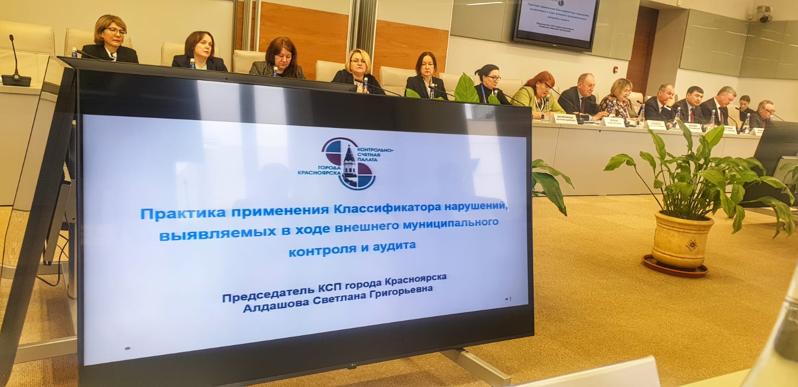 Председатель Контрольно-счетной палаты города Красноярска Алдашова Светлана Григорьевна выступила с докладом «Практическое применение классификатора нарушений, выявляемых в ходе внешнего государственного аудита (контроля)».