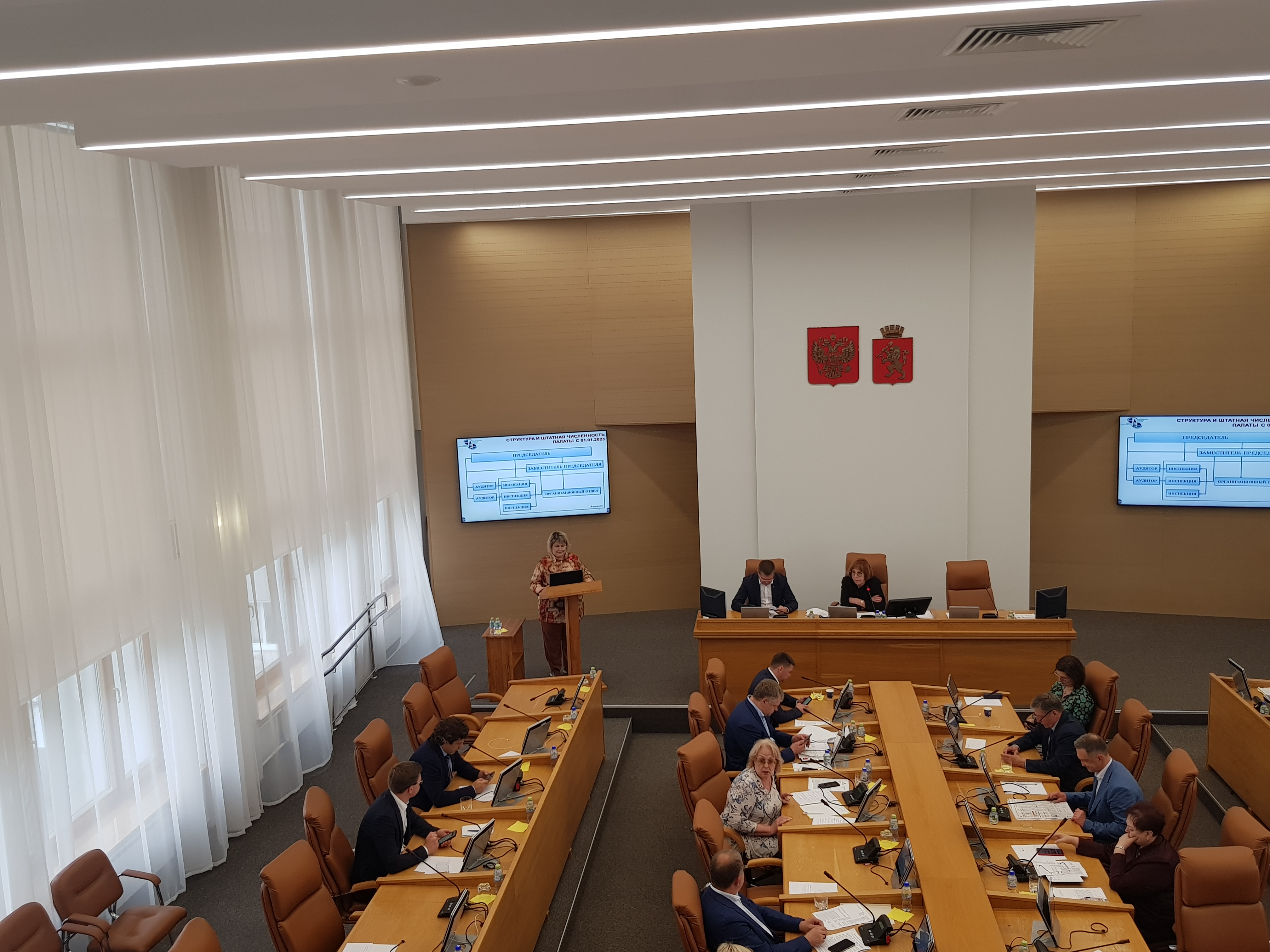 А также при рассмотрении годового отчета об исполнении бюджета города Красноярска за 2022 год выступила с докладом о результатах его внешней проверки.